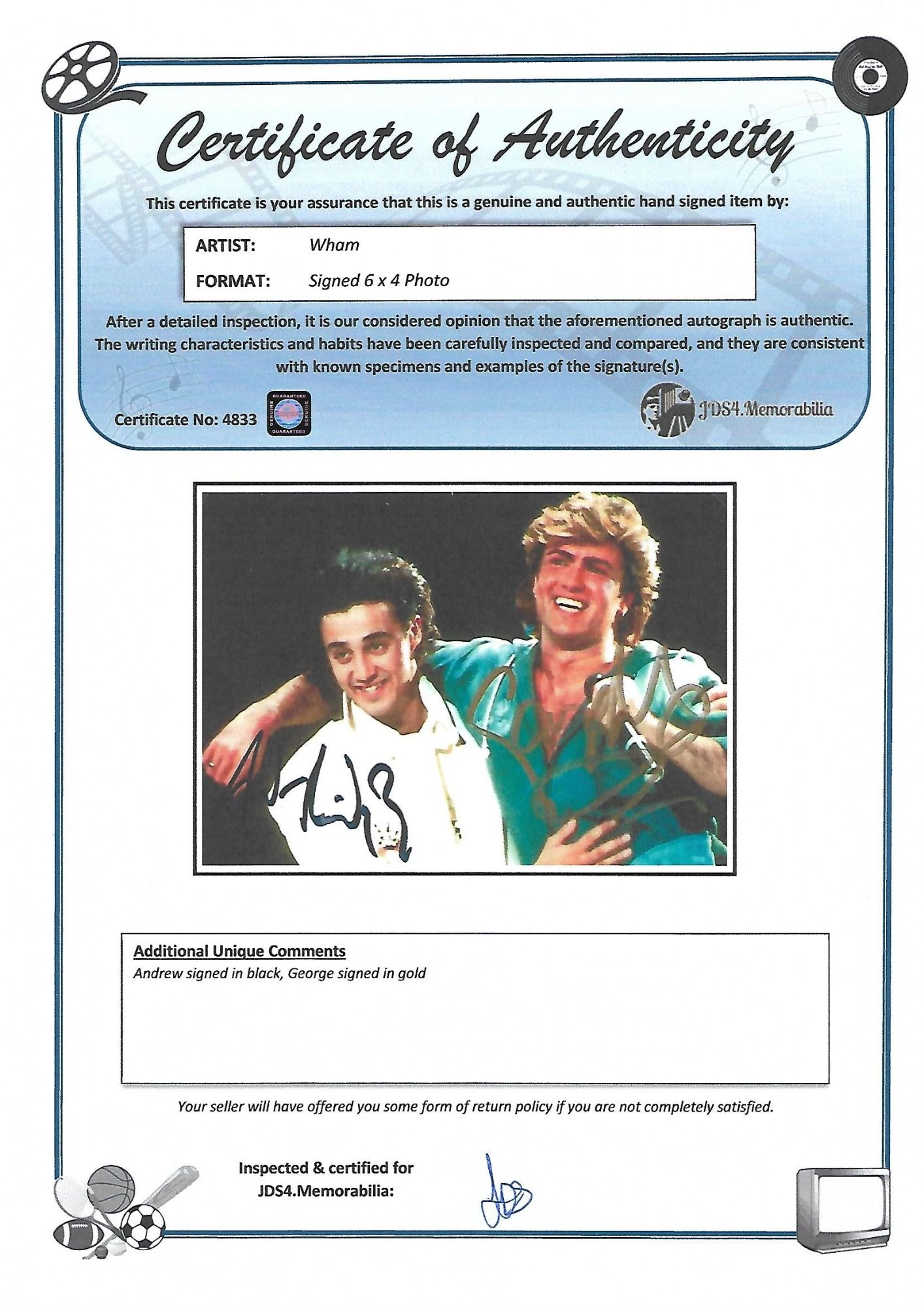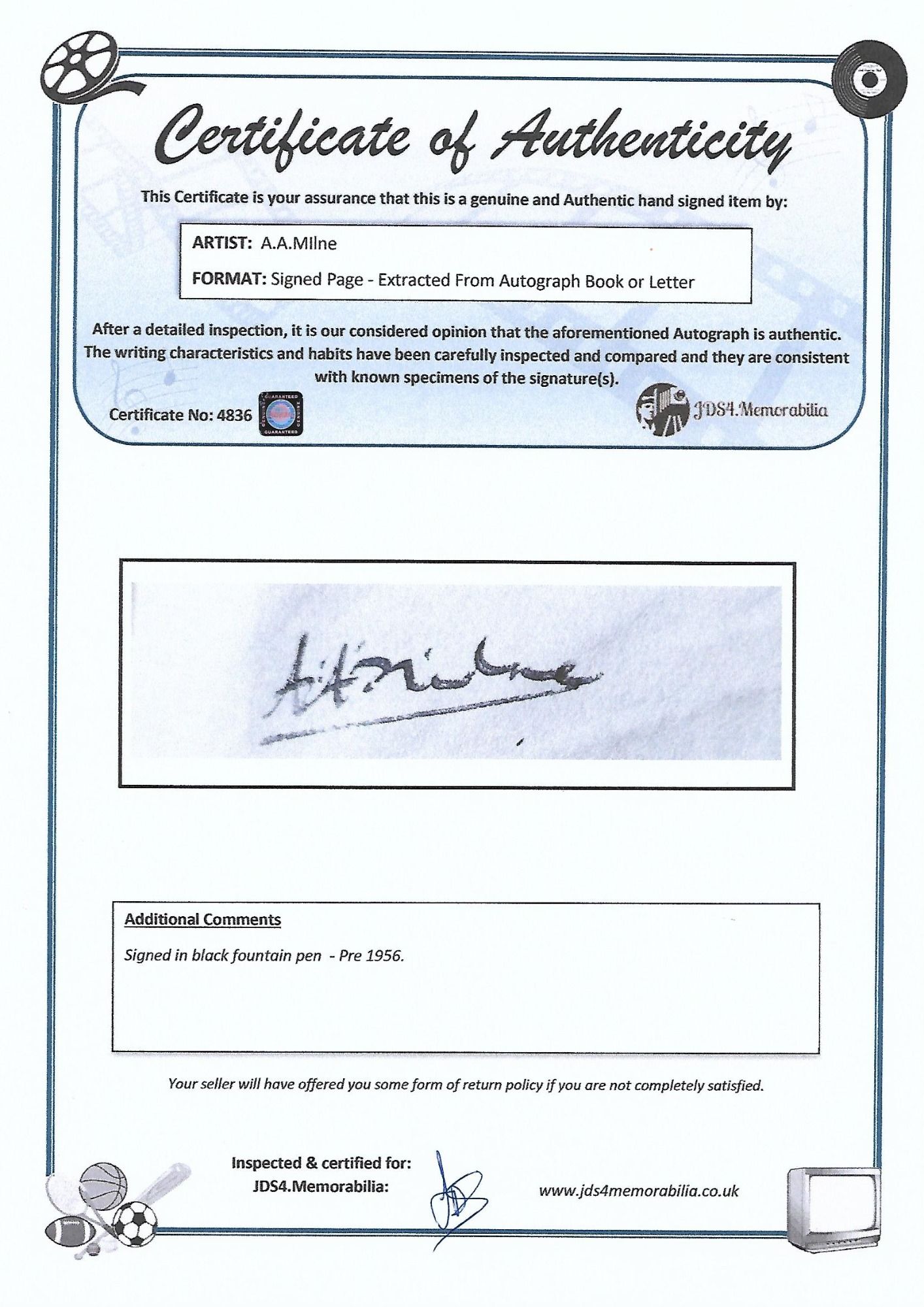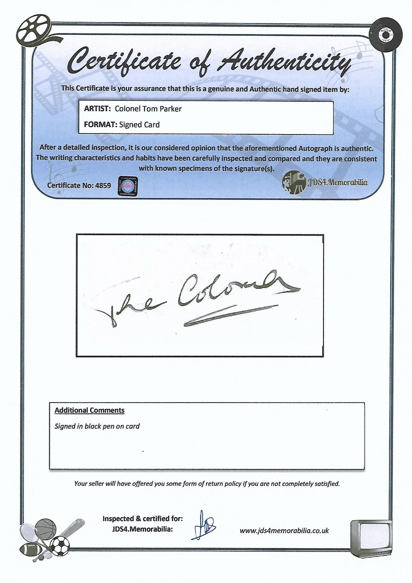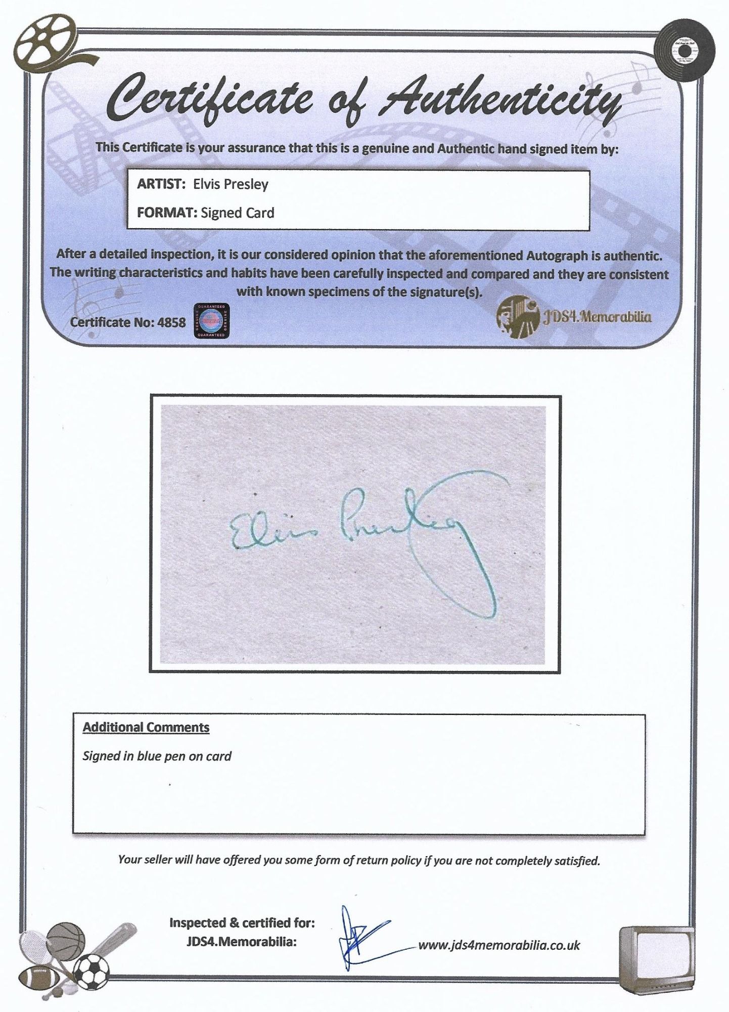 Our team inspect and compare the writing characteristics and habits of the celebrity, and review and verify against known specimens and examples of the signature(s).